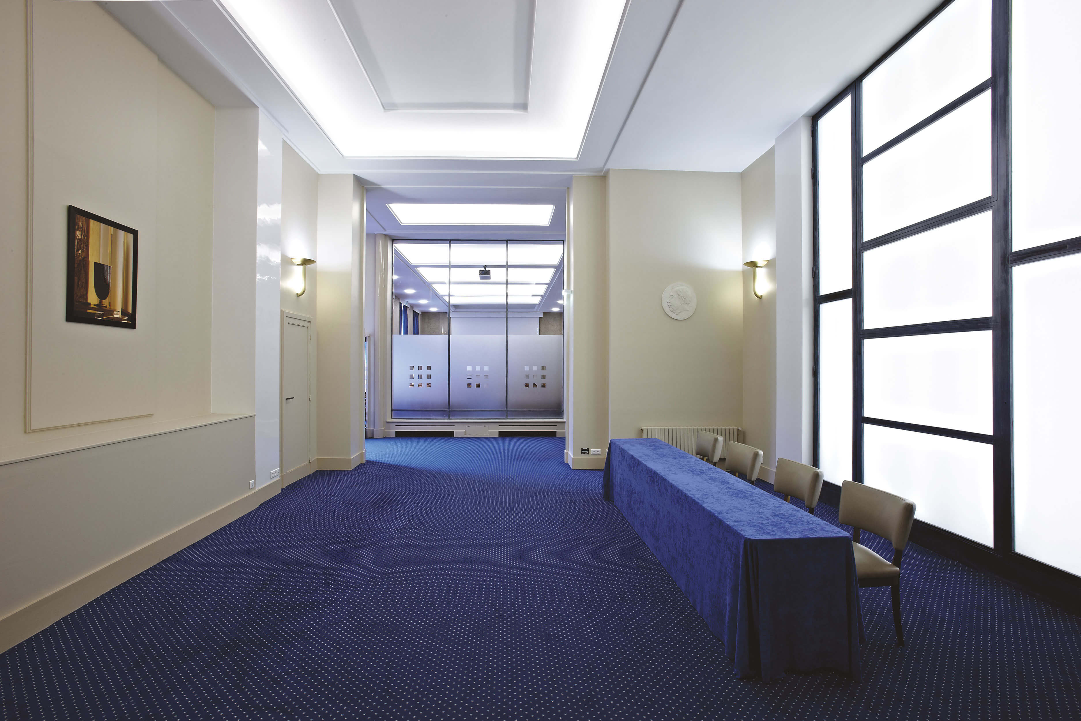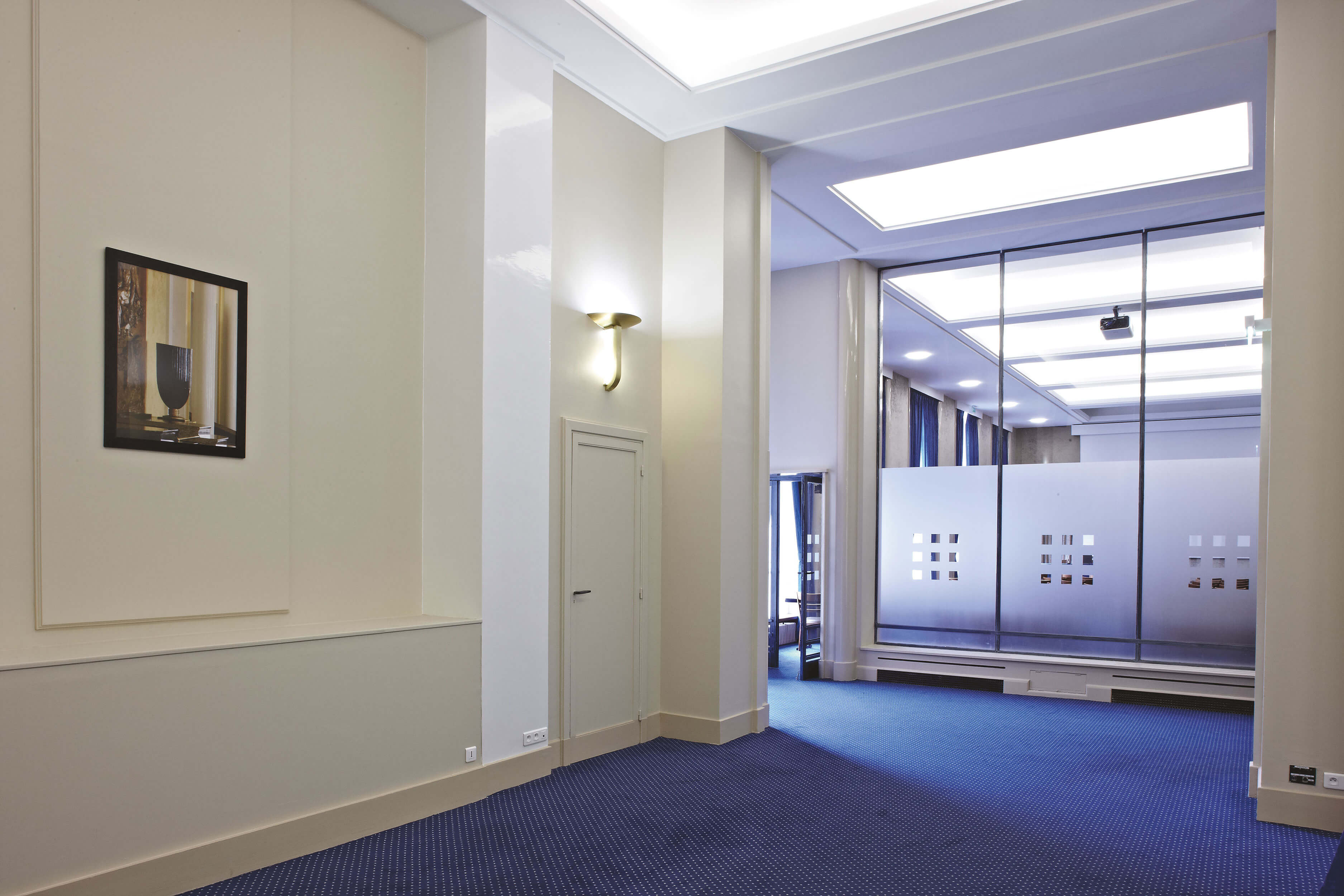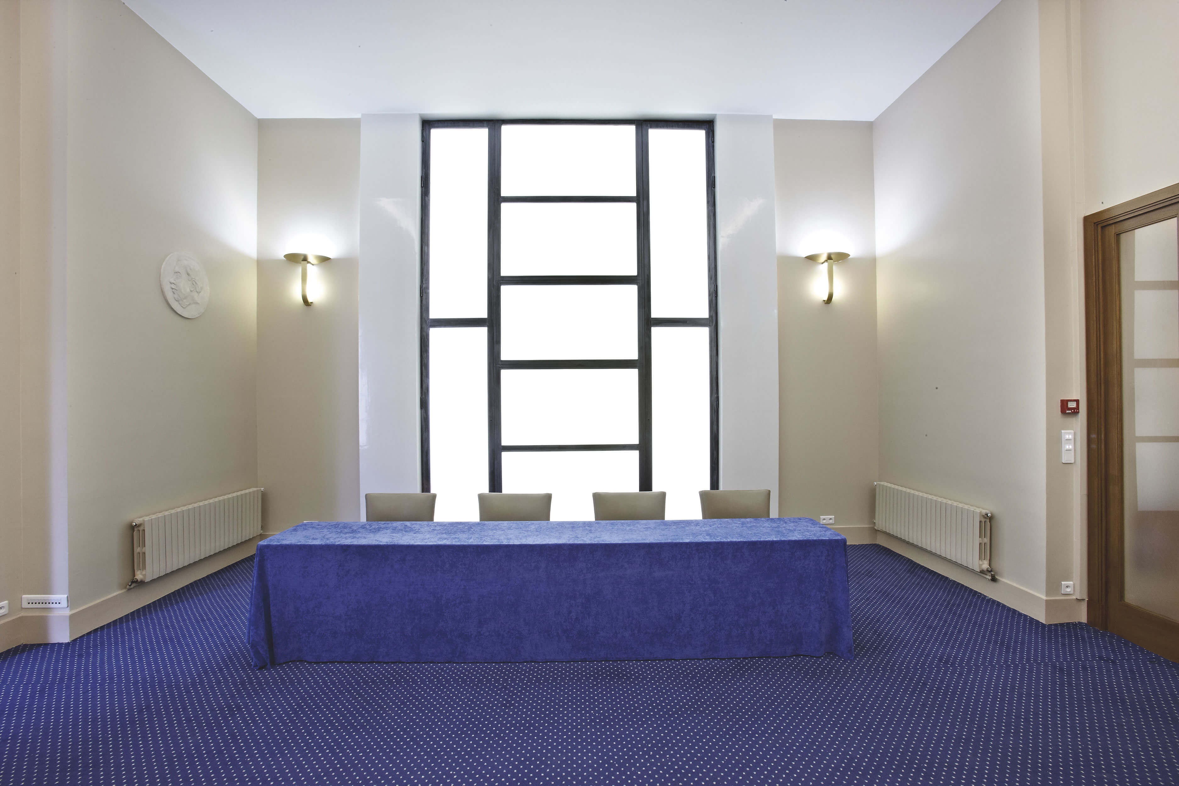Salle de réunion, climatisée, sonorisée et à la lumière du jour, disposant d’un foyer d’accueil. 5 fenêtres sur jardin (expo ouest). 1er étage de l’aile 28.