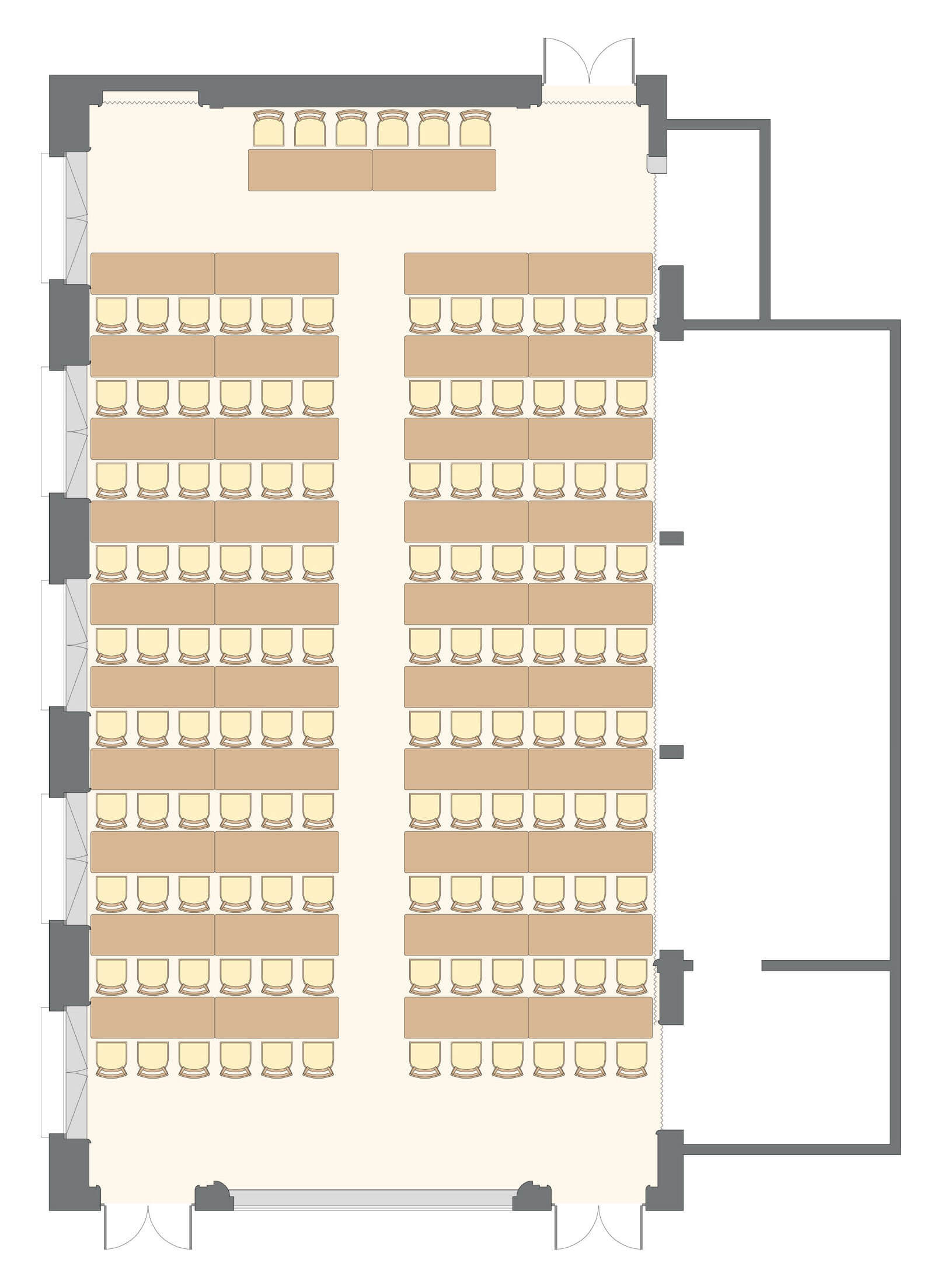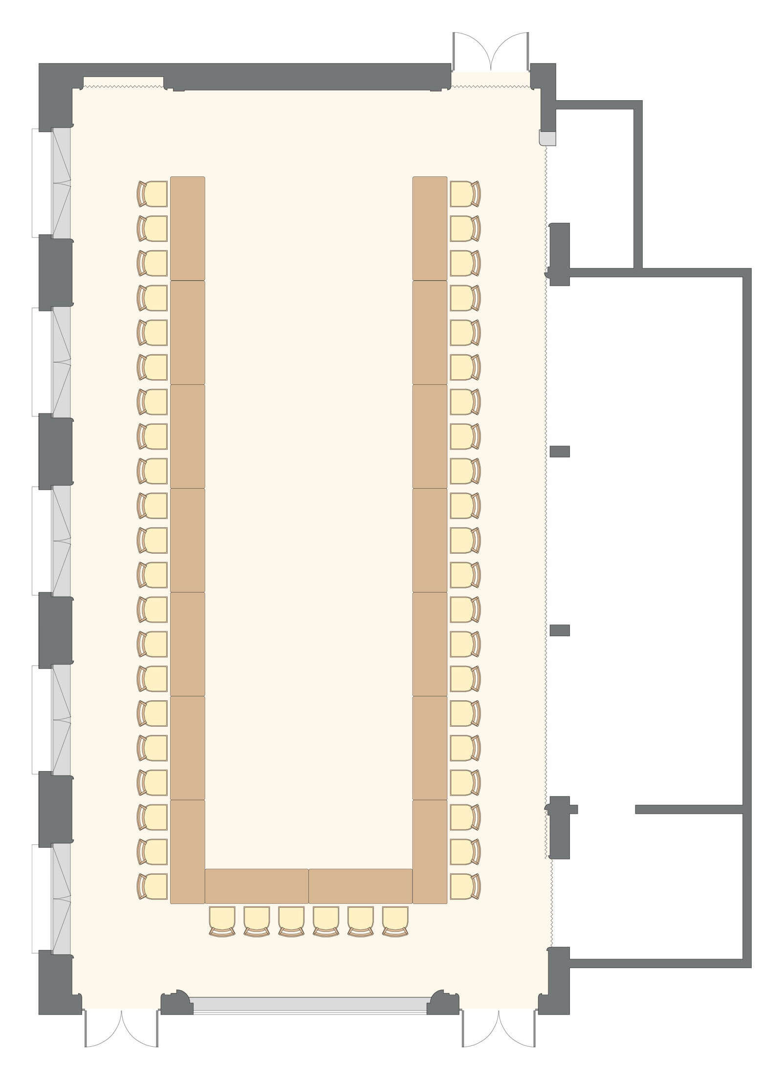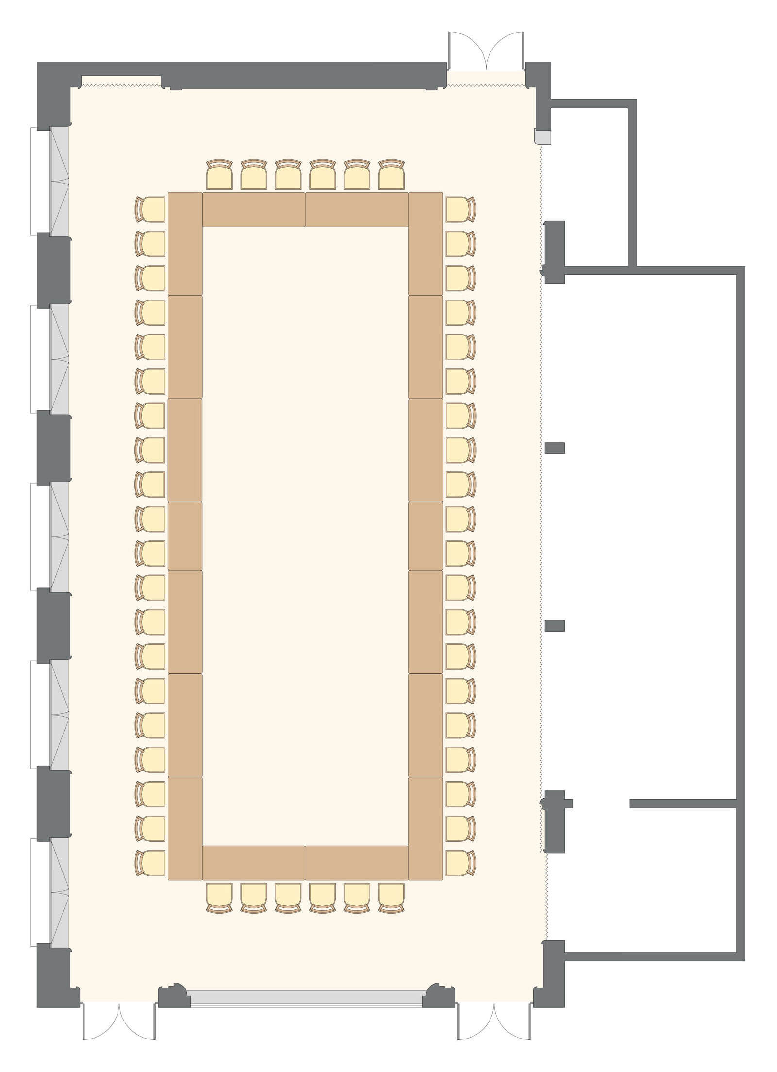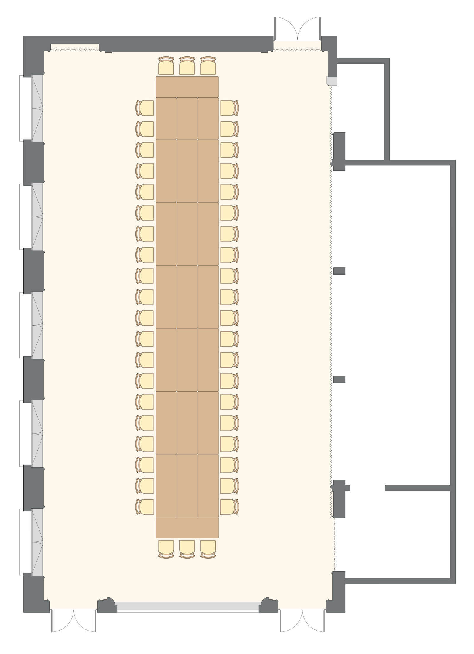 Salle de réunion, climatisée, sonorisée et à la lumière du jour, disposant d’un foyer d’accueil. 5 fenêtres sur jardin (expo ouest). 1er étage de l’aile 28.