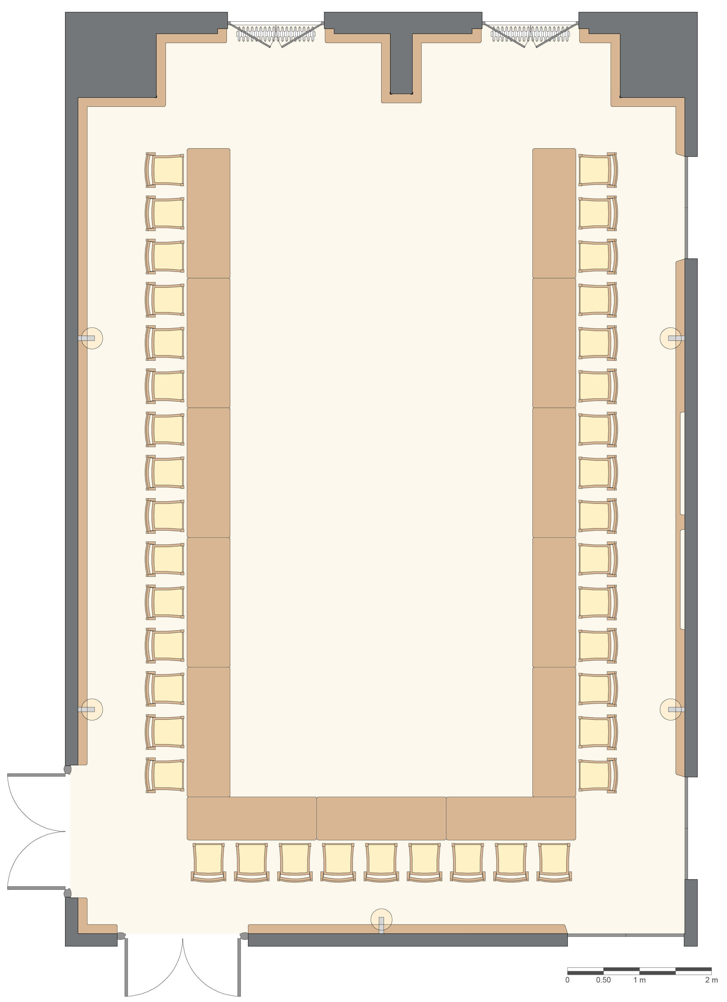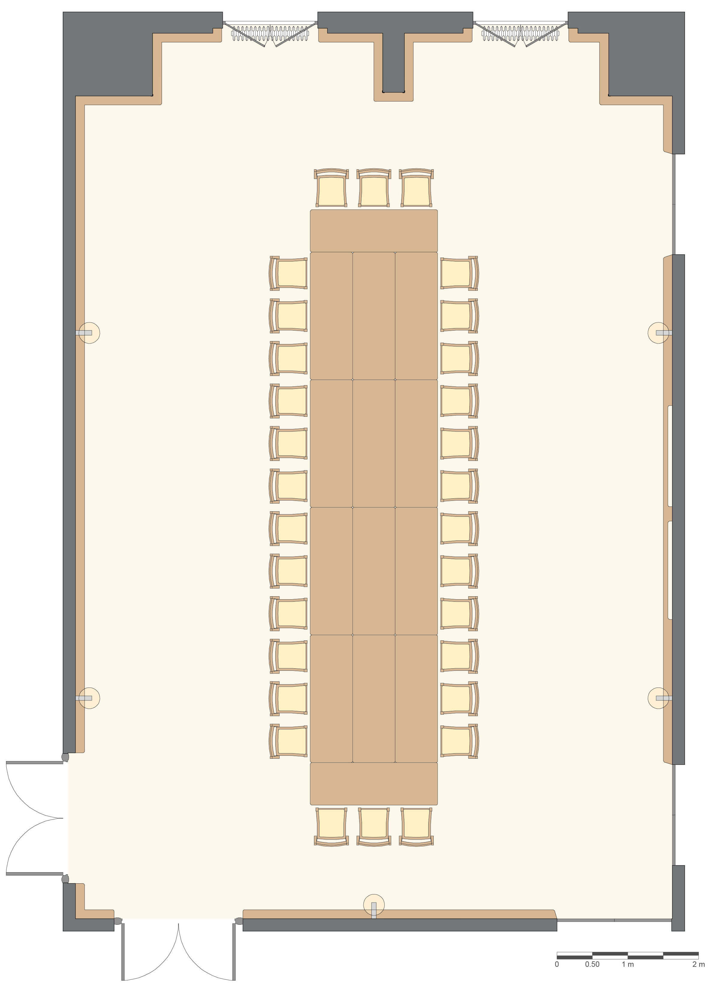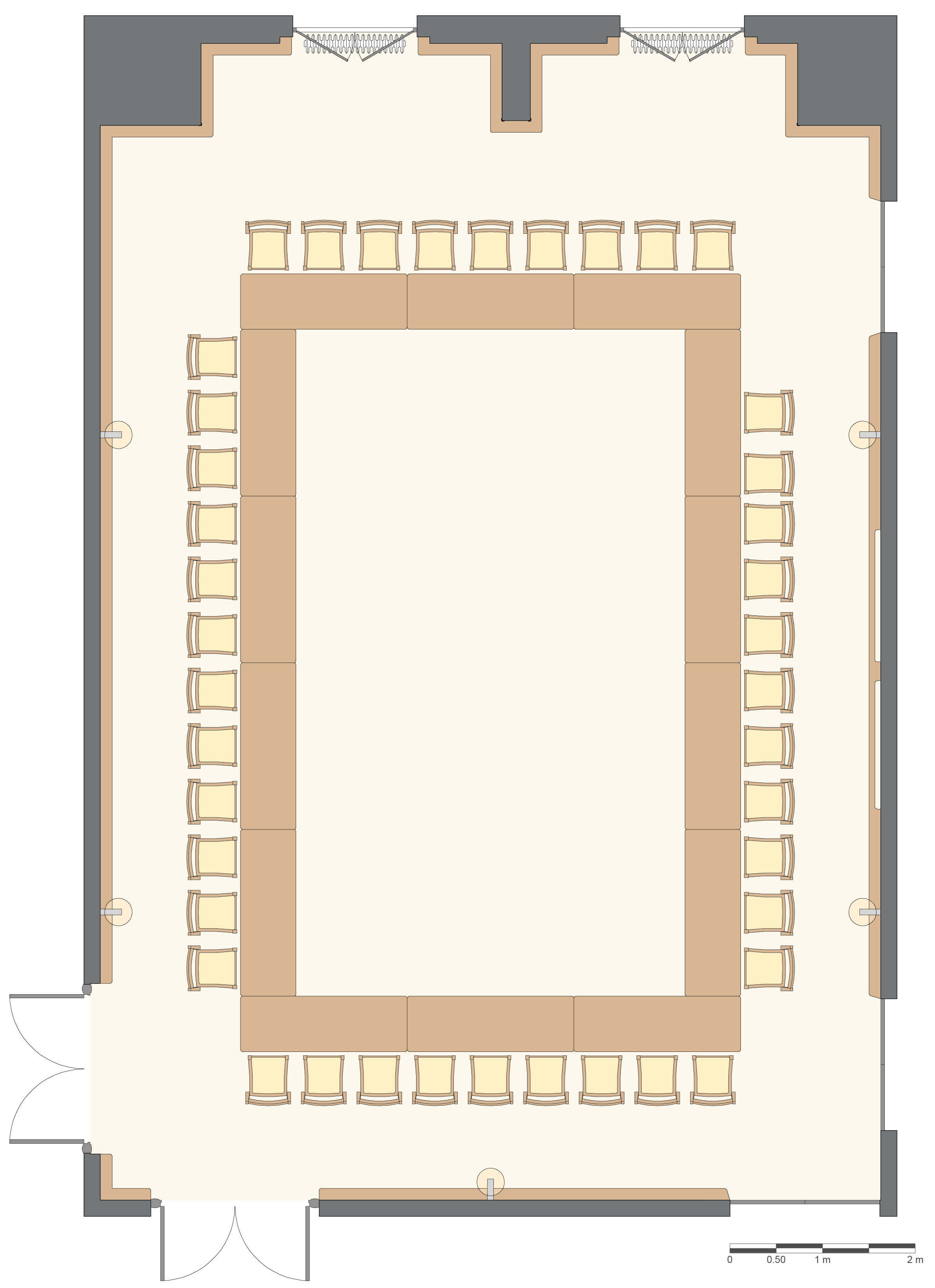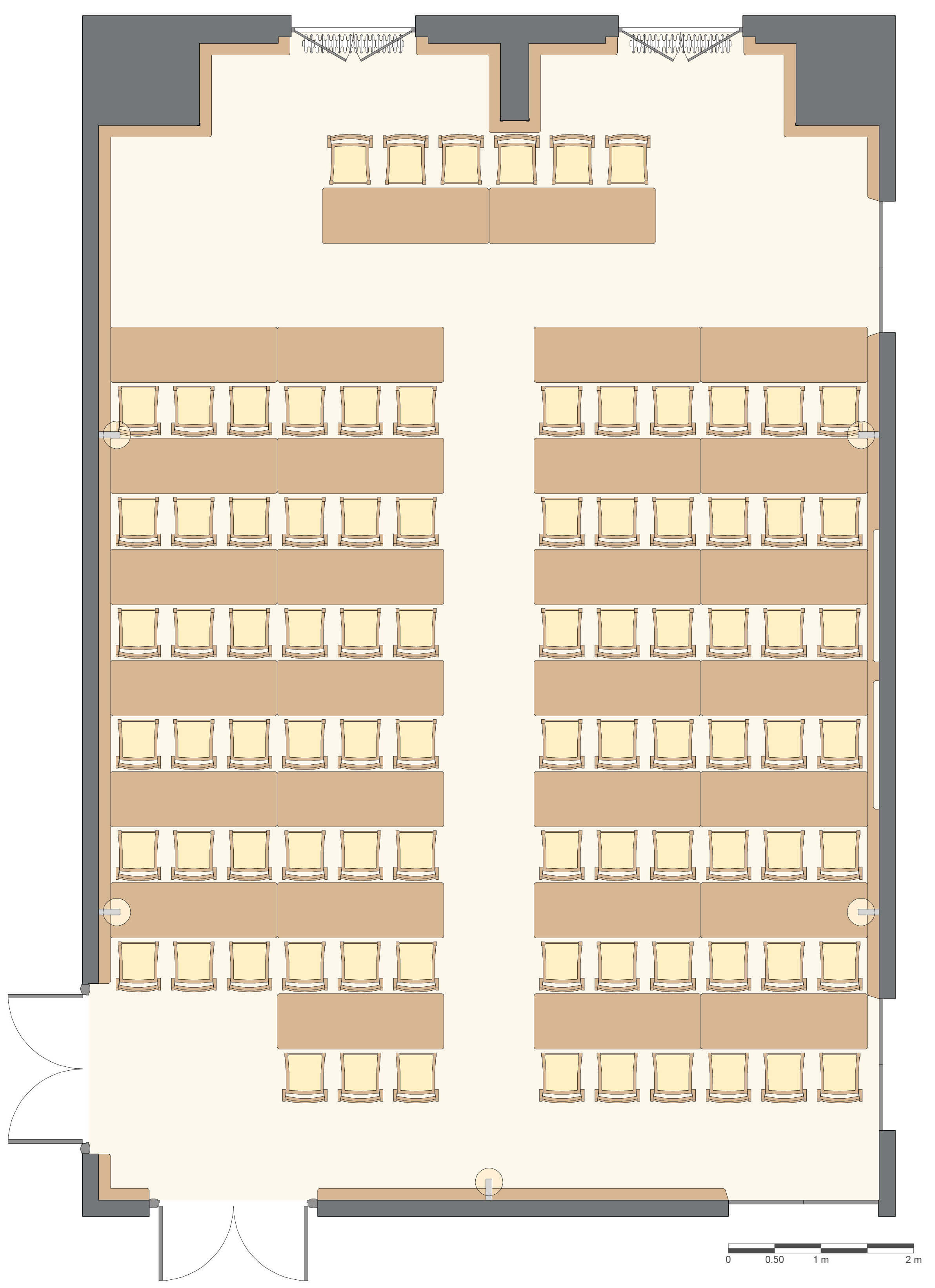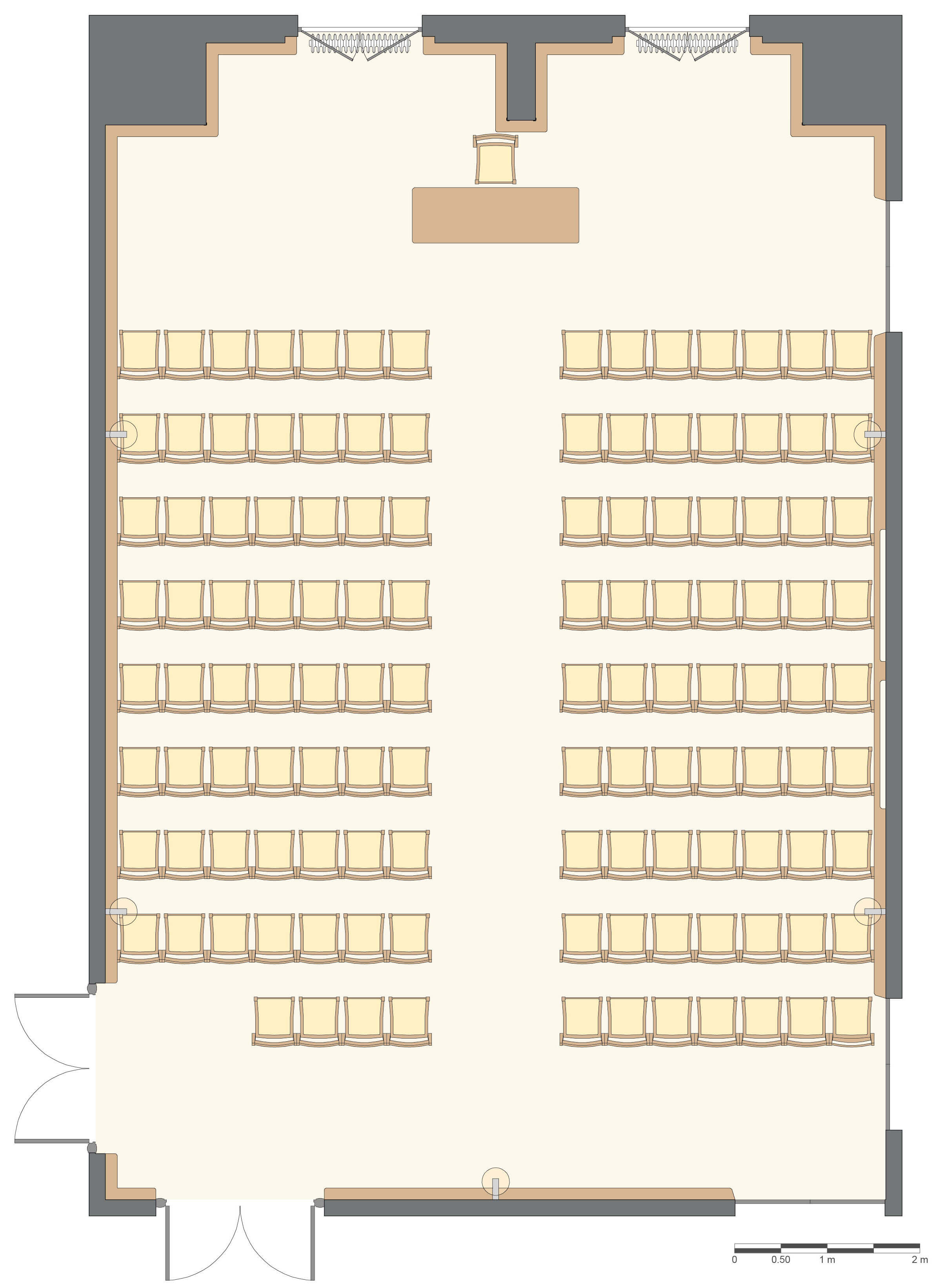 Salle polyvalente, sonorisée, climatisée et à la lumière du jour, au 2ème étage de l'aile 28bis.