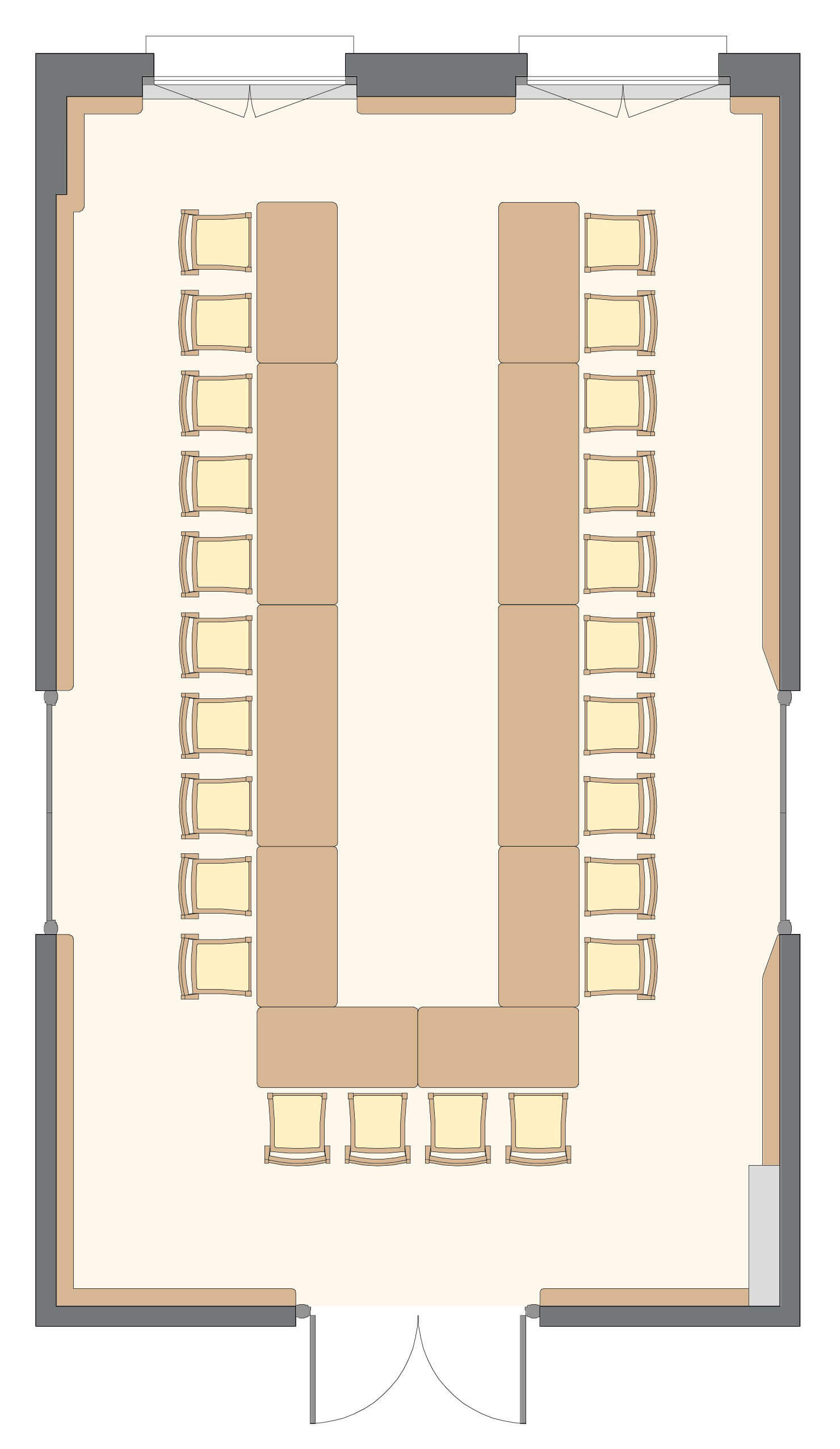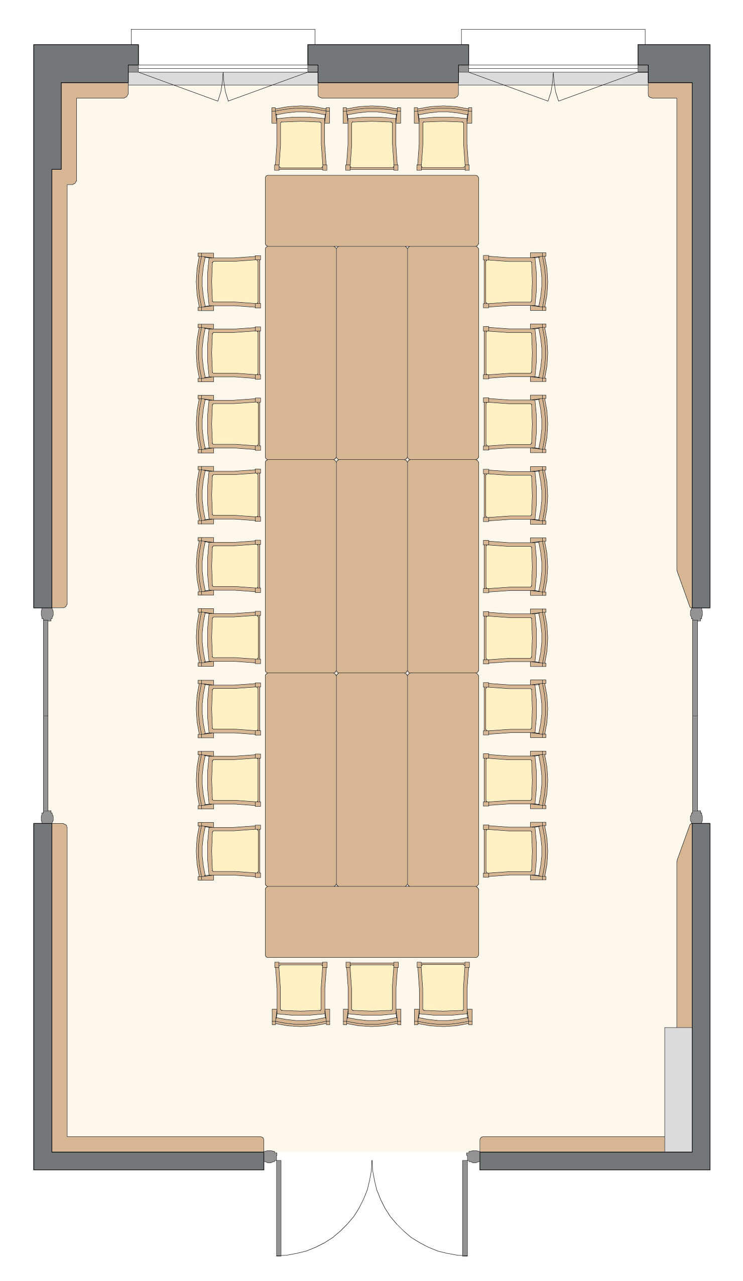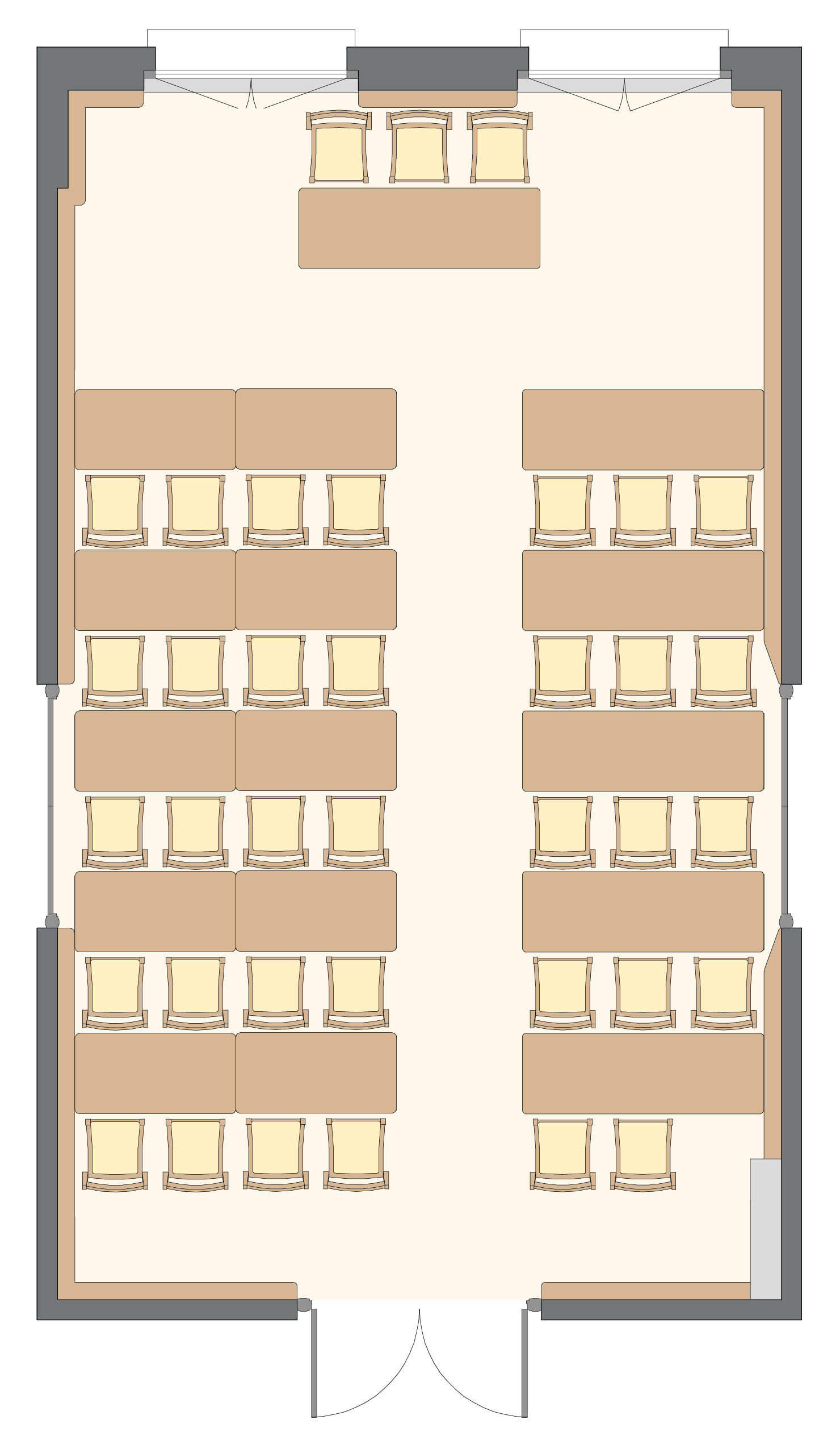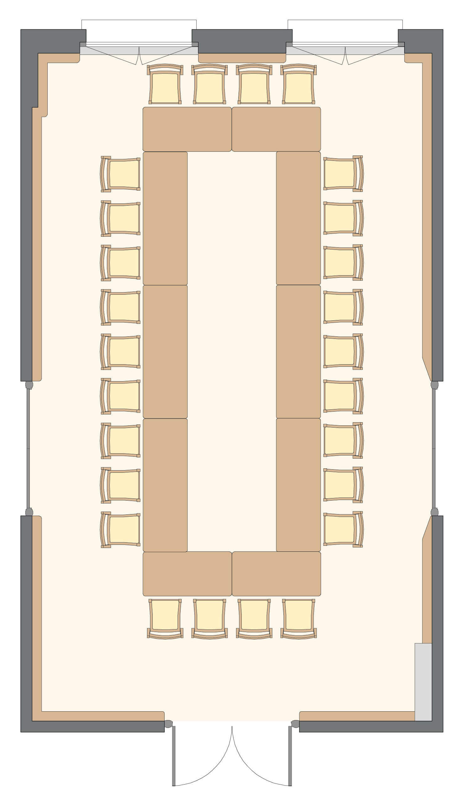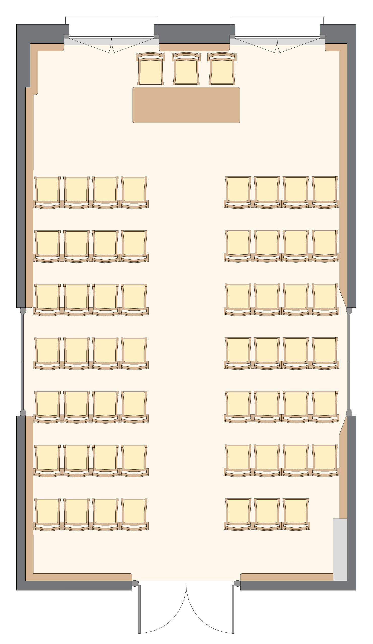 Salle polyvalente, sonorisable et à la lumière du jour, au 2ème étage du corps central.