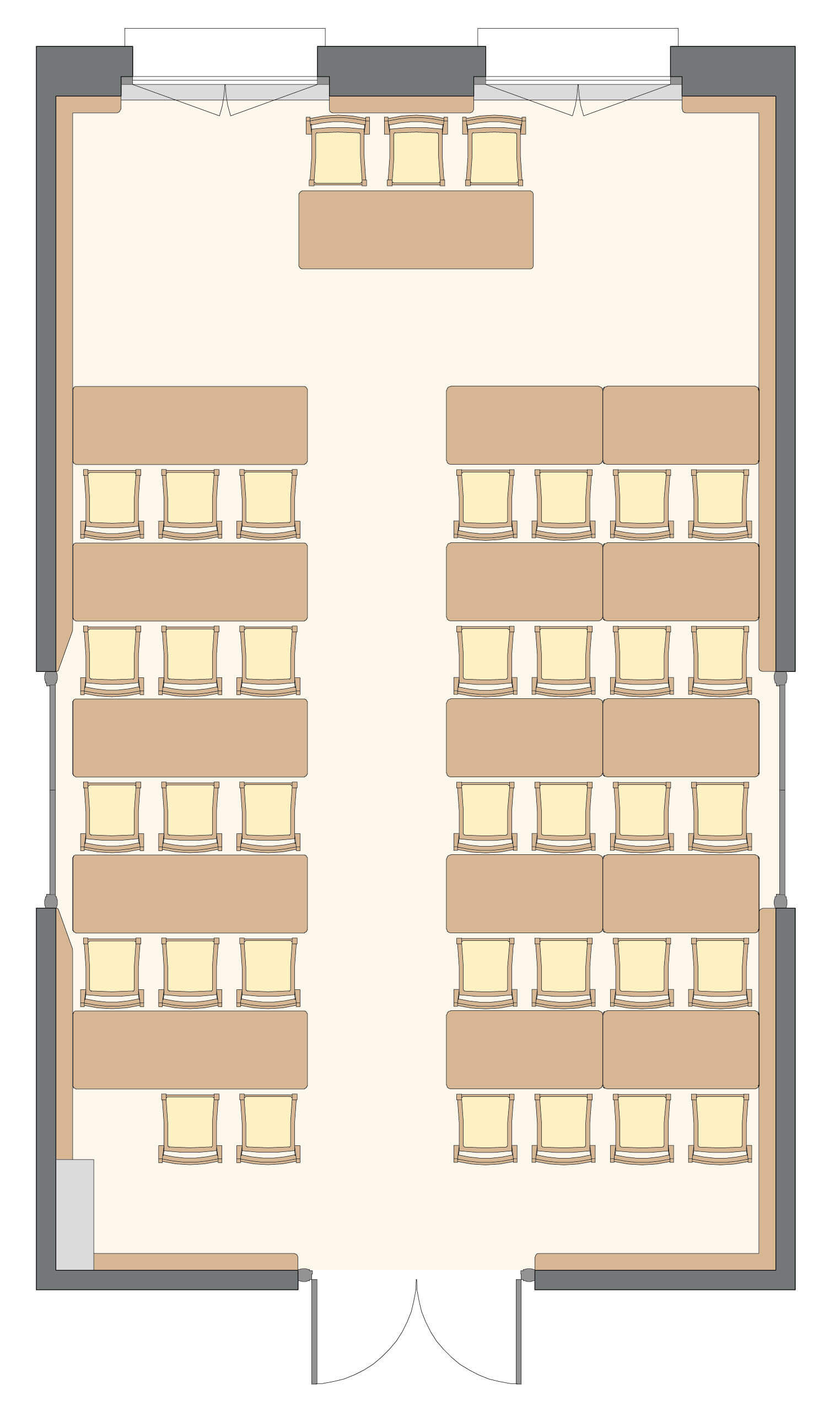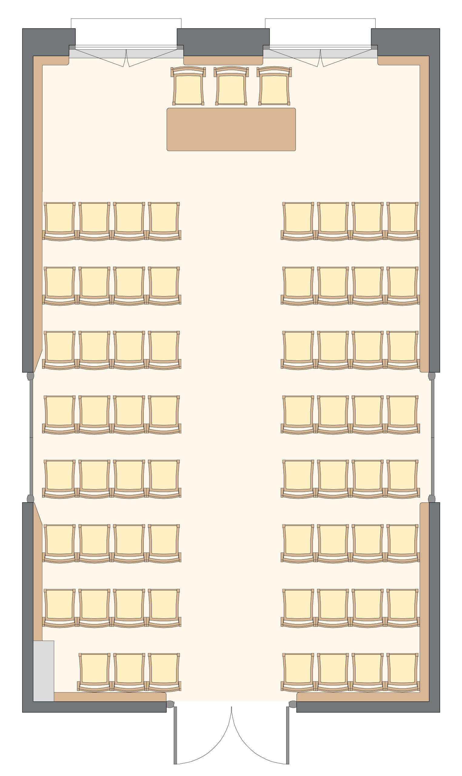 Salle polyvalente, sonorisable et à la lumière du jour, au 2ème étage du corps central.