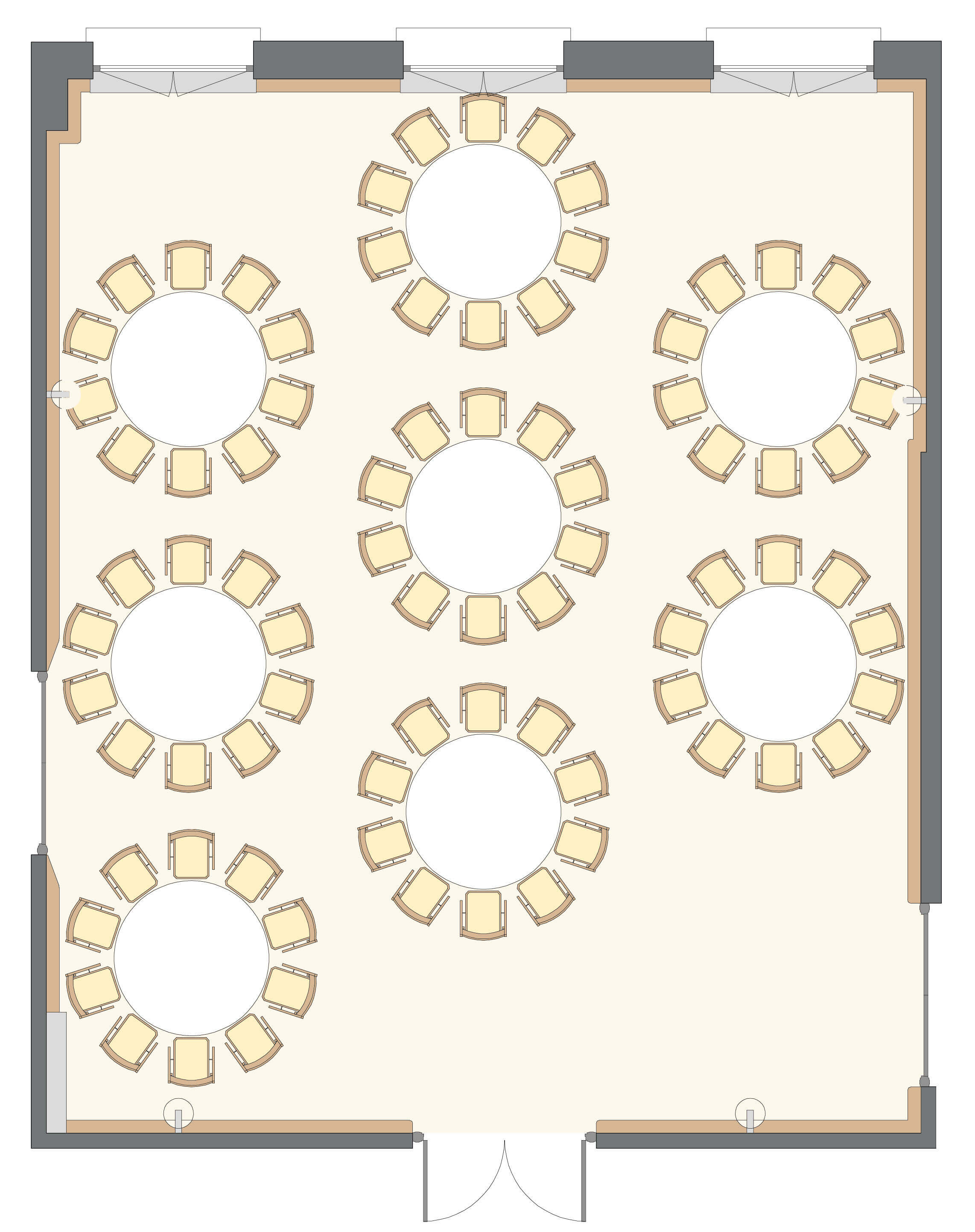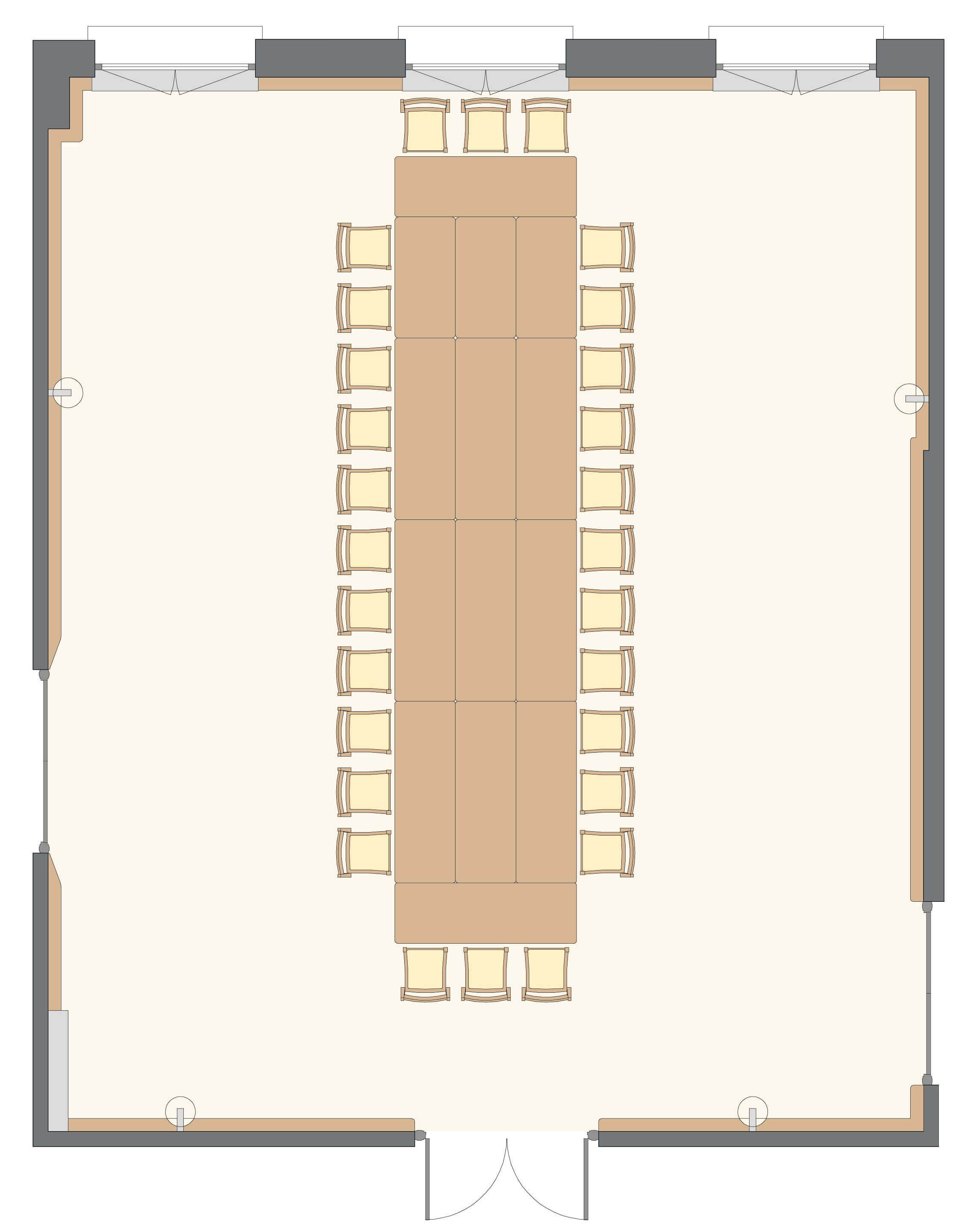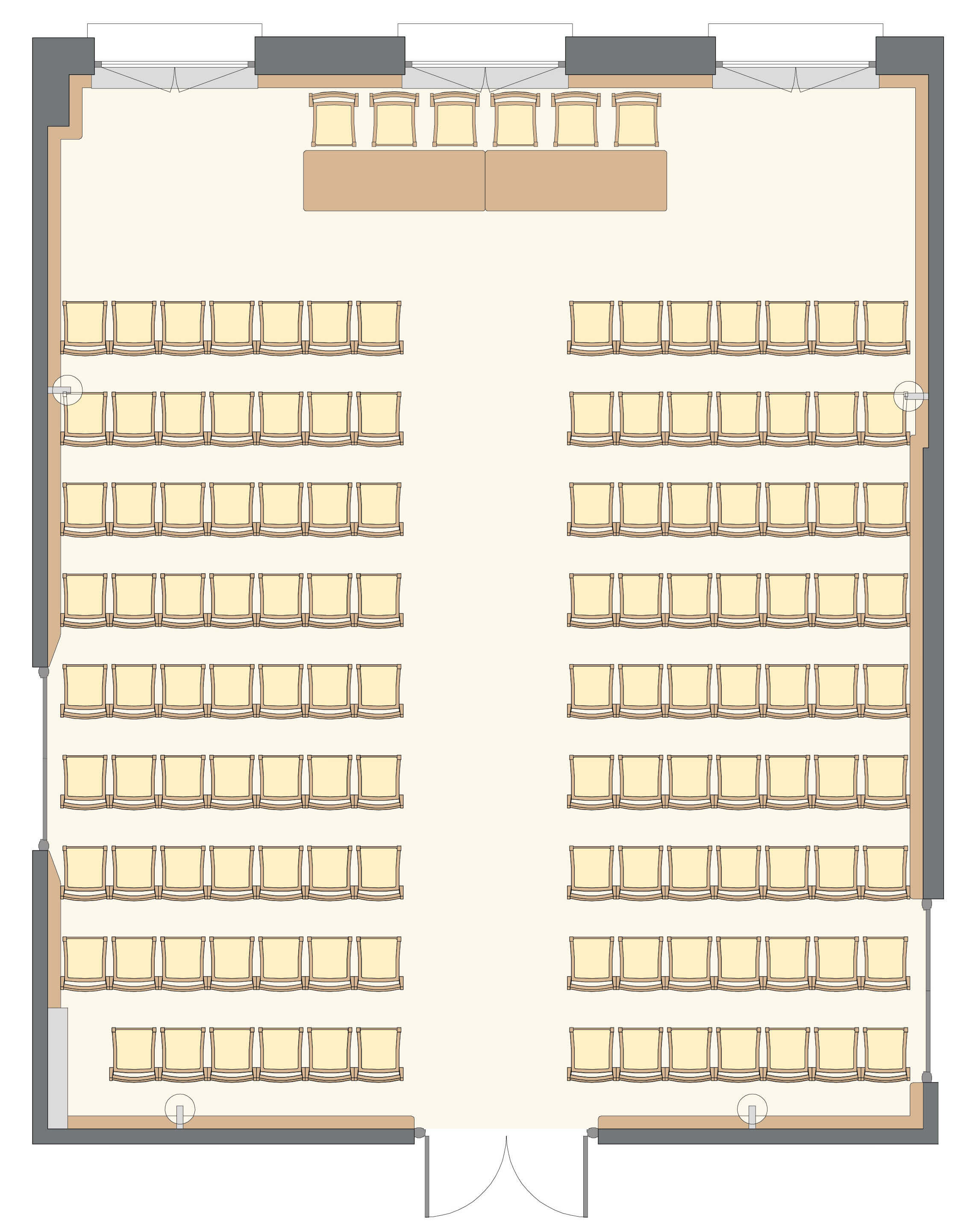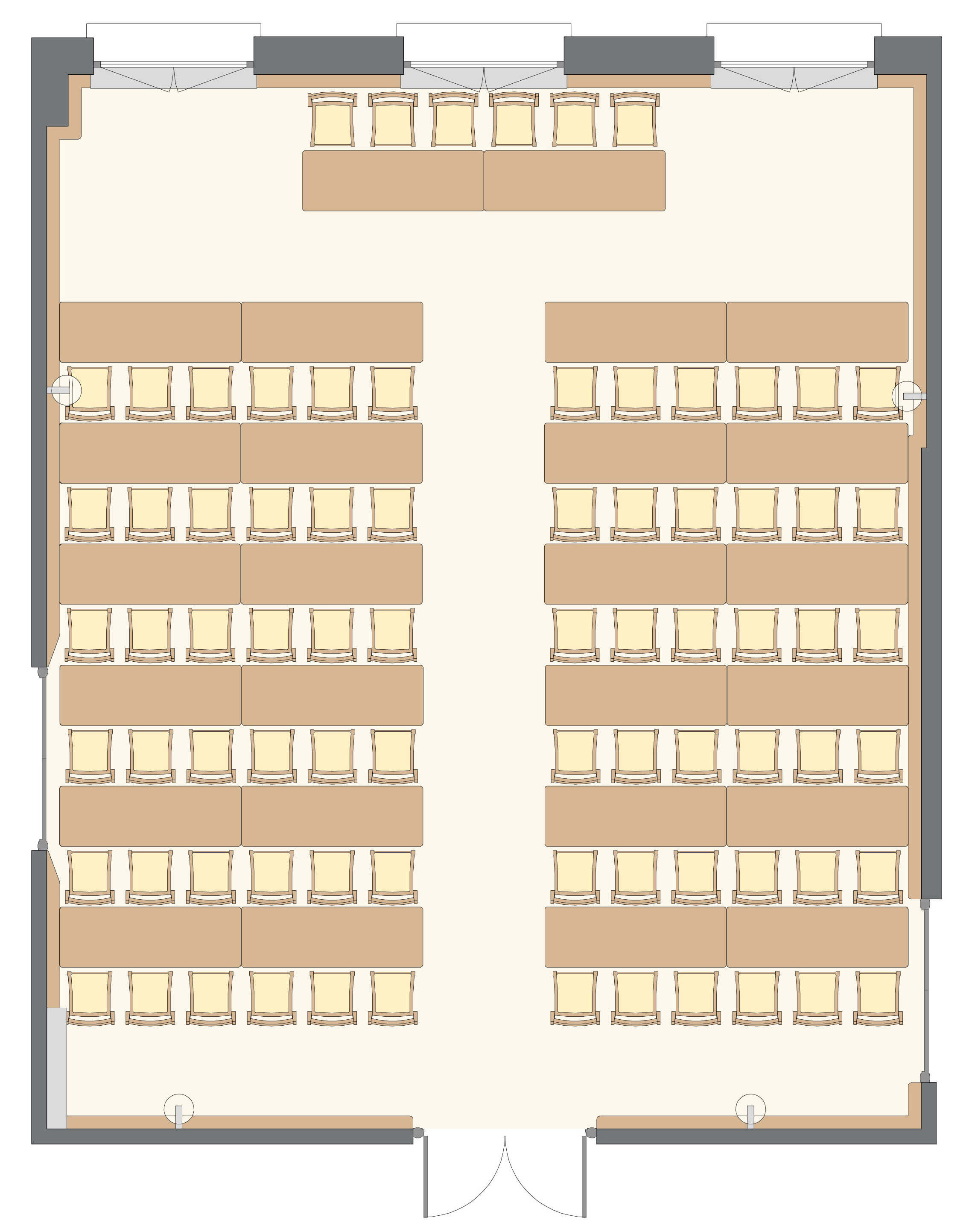 Salle polyvalente, sonorisée et à la lumière du jour, au 2ème étage du corps central.