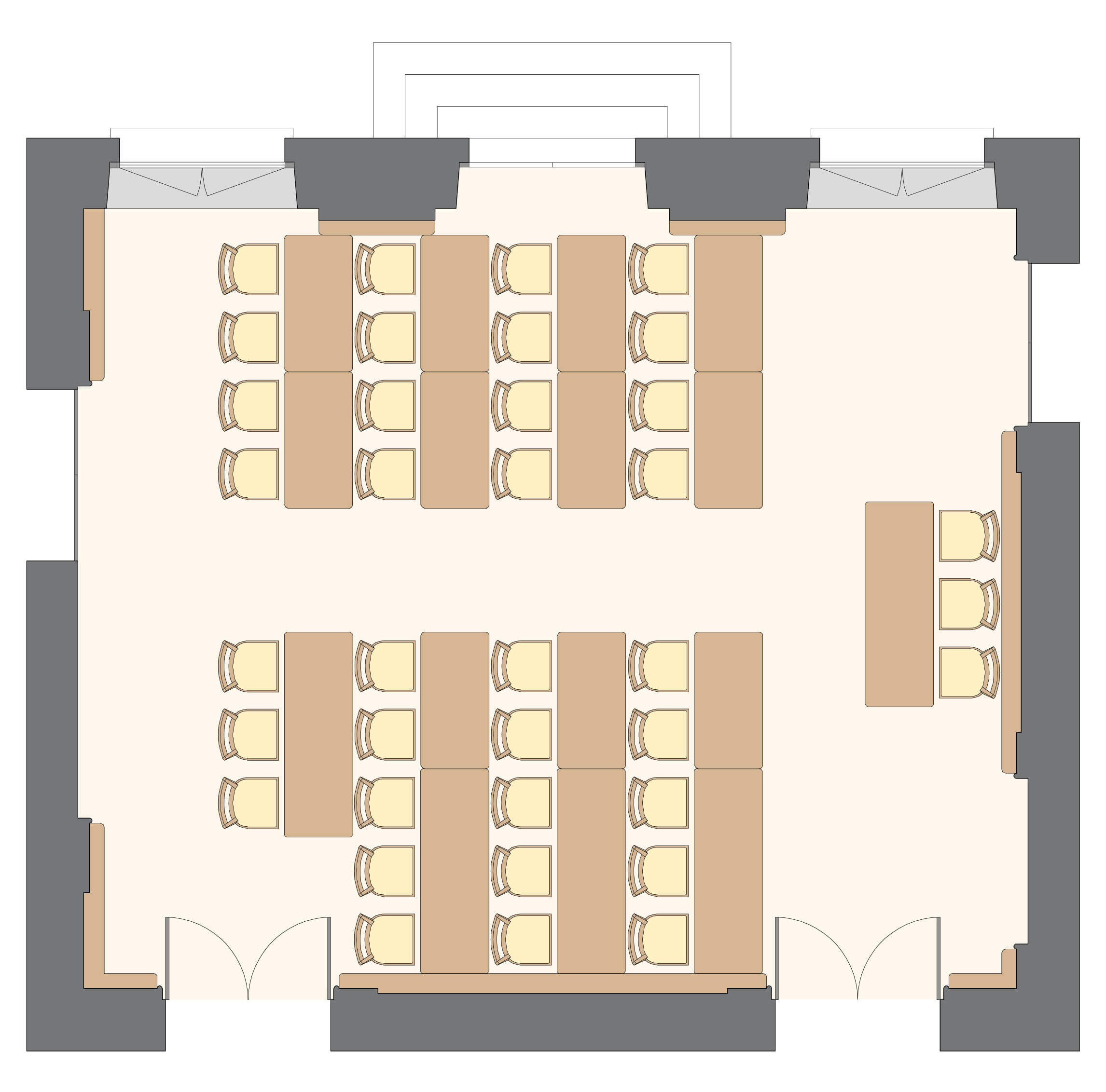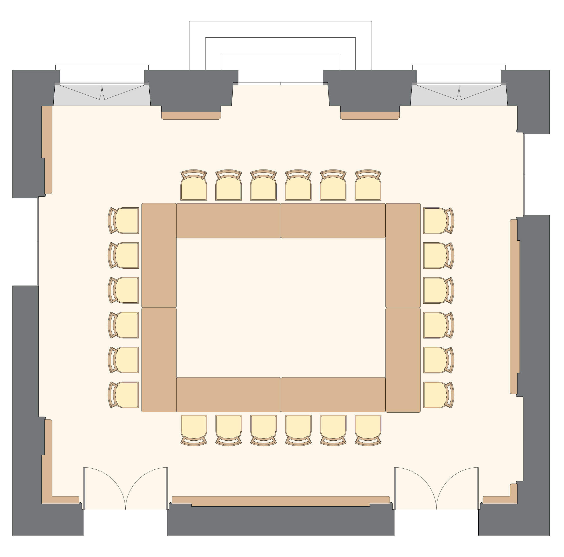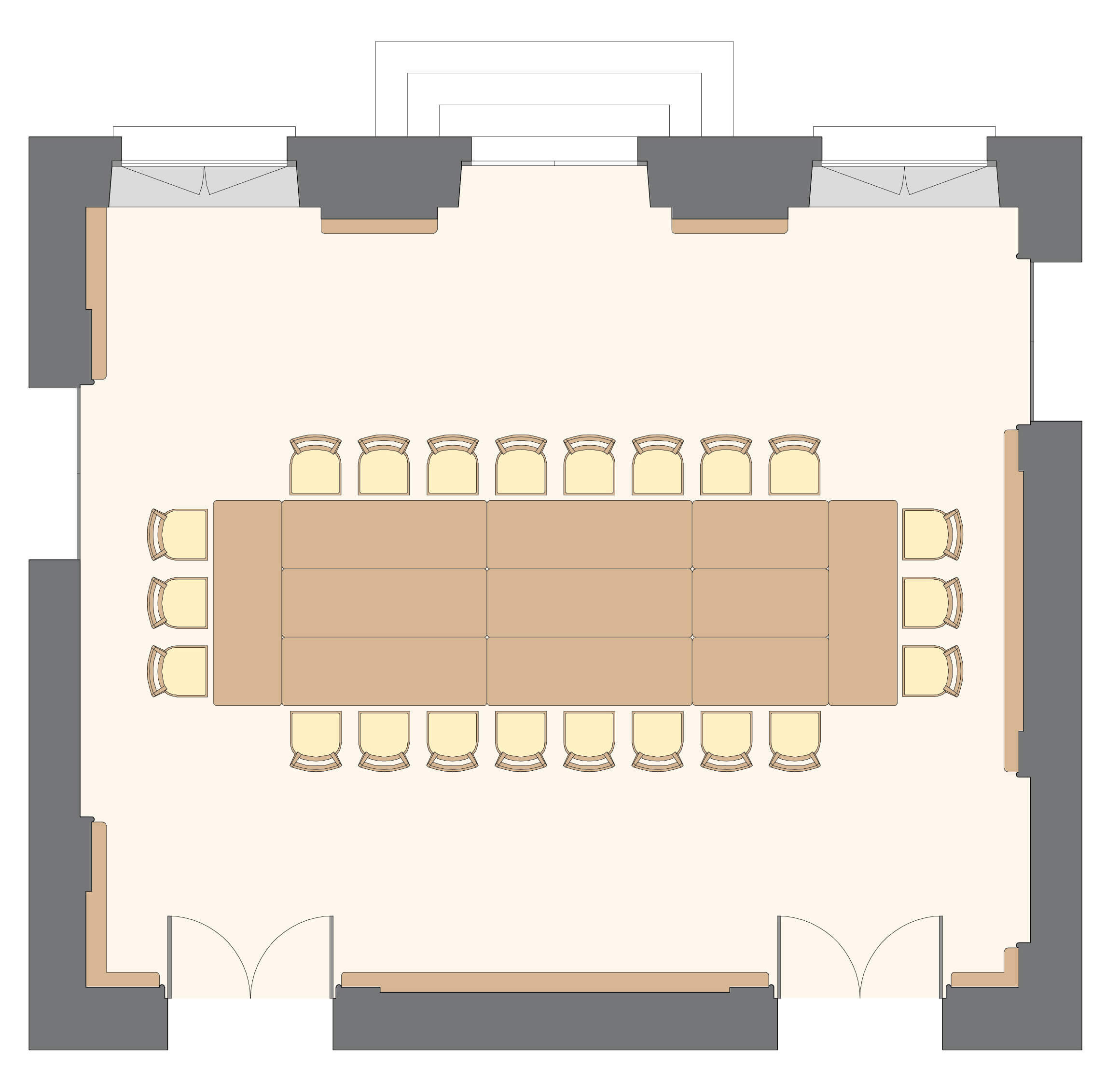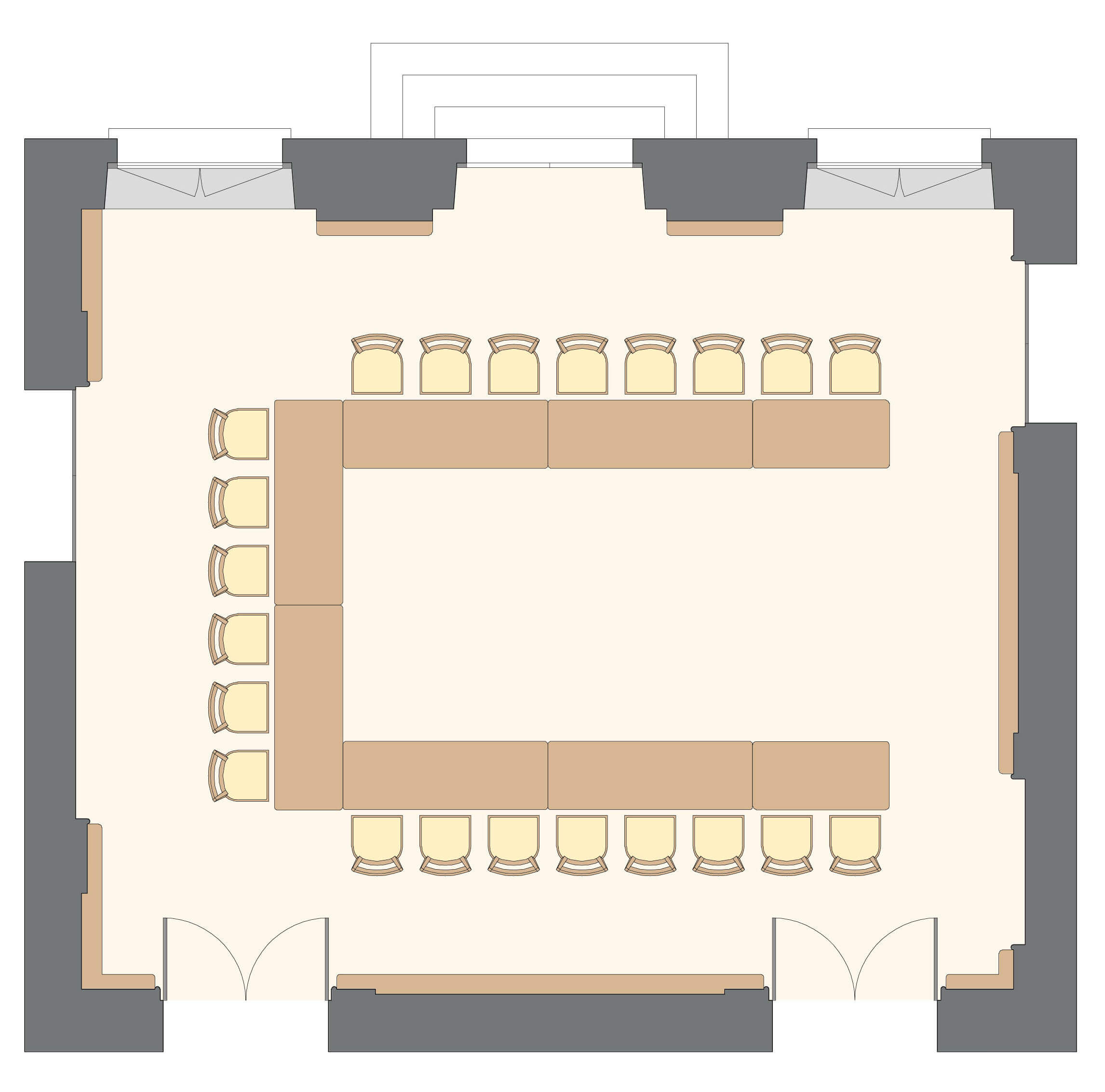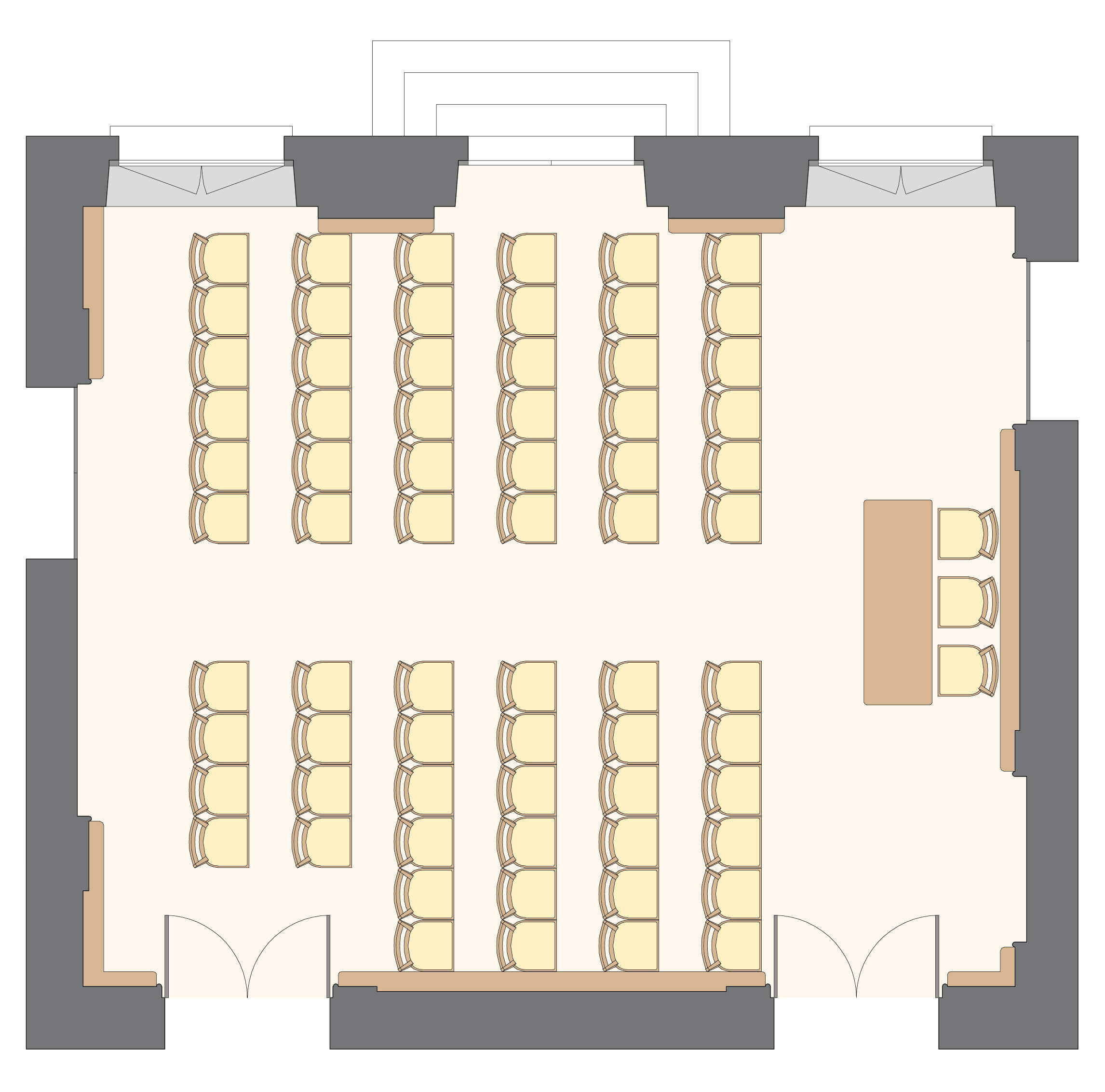 Salon polyvalent, sonorisable et à la lumière du jour, au RDC du corps central.